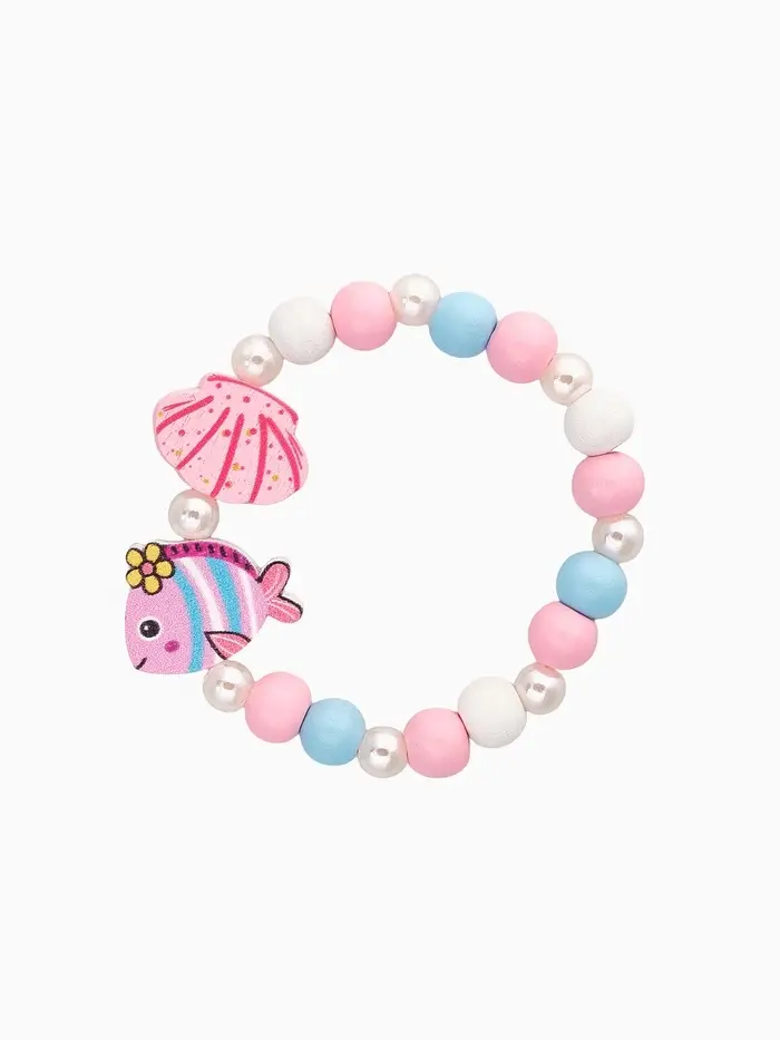 Браслет детский «Выбражулька. Ракушка, рыбка, жемчуг», d=5.8 см, голубой, розовый