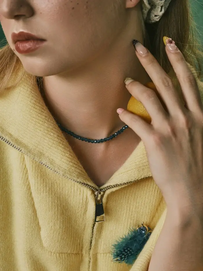 Это ожерелье словно отражение морской глади — прозрачное, воздушное и притягательное. Оно подчёркивает естественную красоту и создаёт ощущение лёгкости, делая образ завершённым и гармоничным.