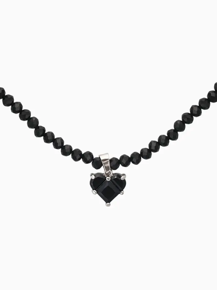 Чёрный бисерный чокер с металлическим сердечком на серебристой основе — лаконичный аксессуар для женщин, ценящих стиль и выразительность. Регулируемая длина помогает точно подстроить украшение под любой вырез и образ.