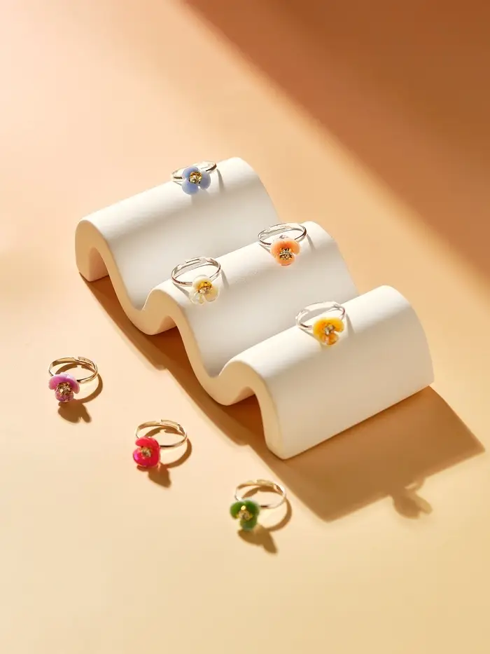 Изящное кольцо для девочек с металлическим основанием и серебристой фурнитурой привлекает внимание своей утончённой игрой цвета и форм. Микс оттенков и декоративных элементов, включая аккуратные пластиковые вставки и блестящие стразы, придаёт изделию лёгкость и праздничность, подчёркивая индивидуальность юной обладательницы.