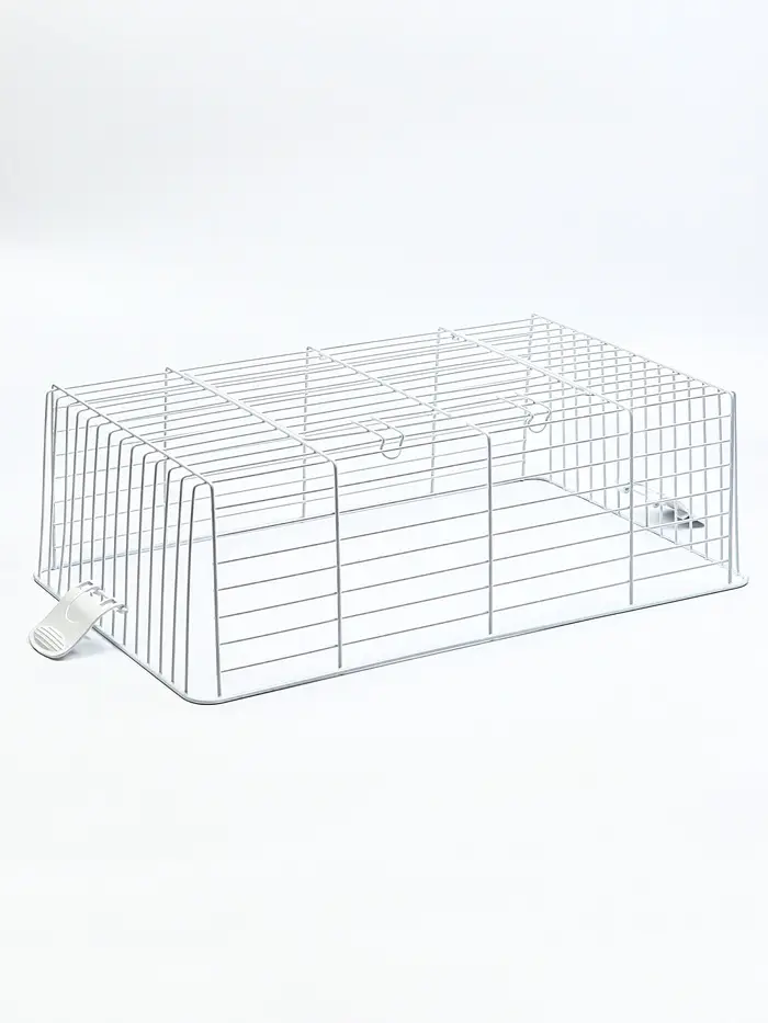 - Прочная конструкция из металла и пластика: Металлические прутья выдерживают активность кролика, не гнутся и не ломаются. Пластиковые детали легко чистятся и устойчивы к влаге.