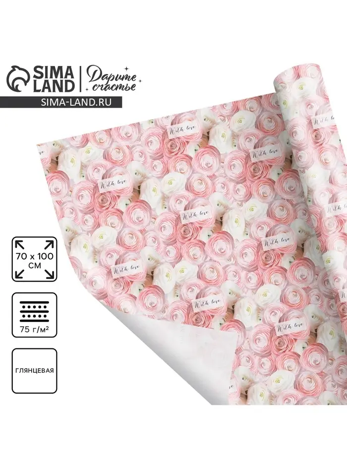 Бумага упаковочная глянцевая «Ранункулюсы», 70×100 см