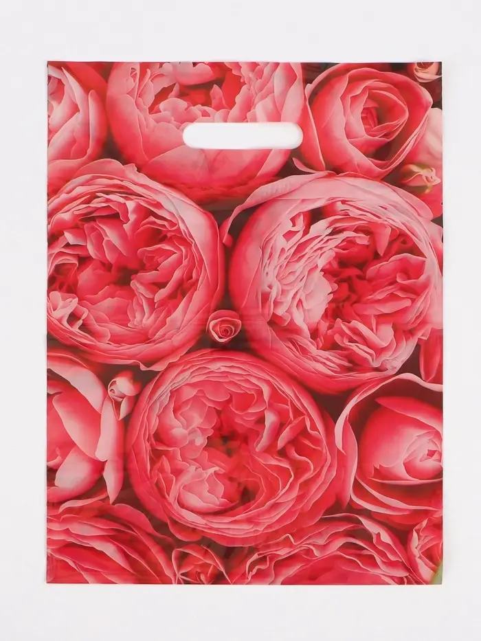Пакет полиэтиленовый с вырубной ручкой «Пионы», розовые, 30×40 см, 50 мкм