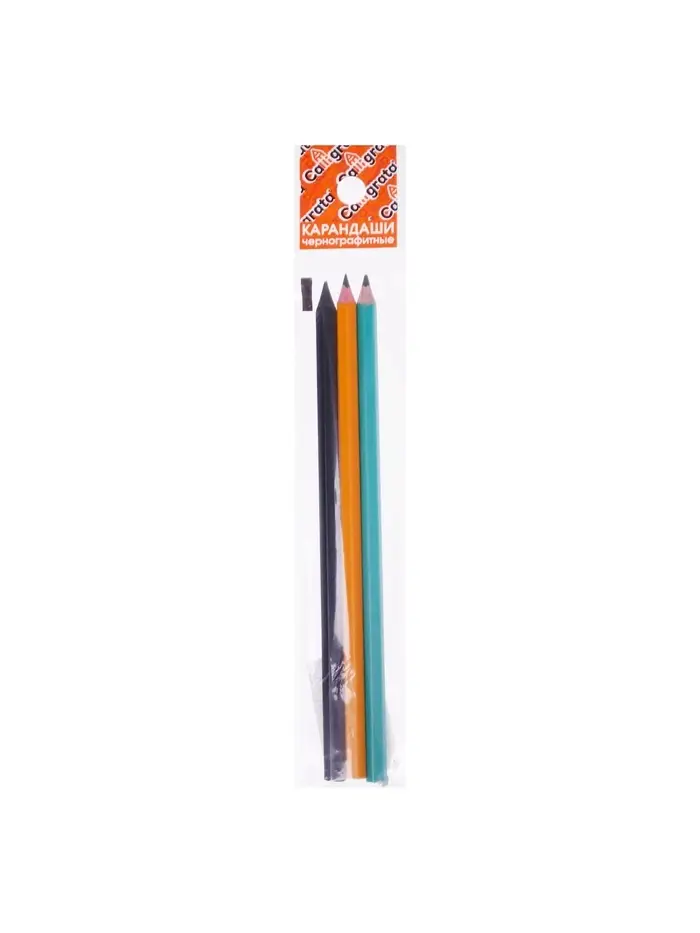 Набор карандашей Calligrata, чернографитных, 3 штуки, HB, пластиковые, микс