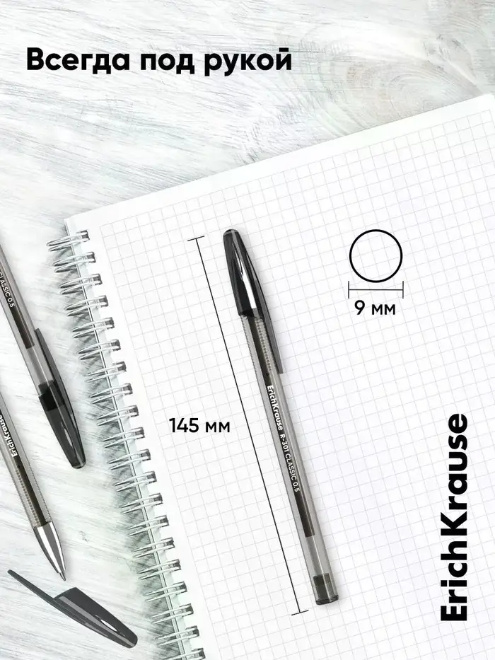 - Тонкий пишущий узел 0.5 мм обеспечивает аккуратность и экономию места.