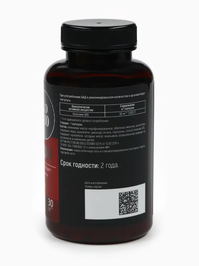 Состав: оливковое масло нерафинированное, оболочка (желатин, загуститель глицерин, вода, красители: диоксид титана, тартразин, понсо), коэнзим Q10.