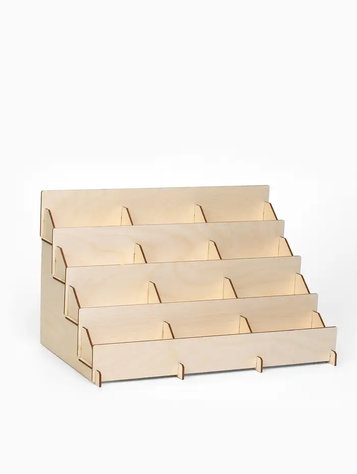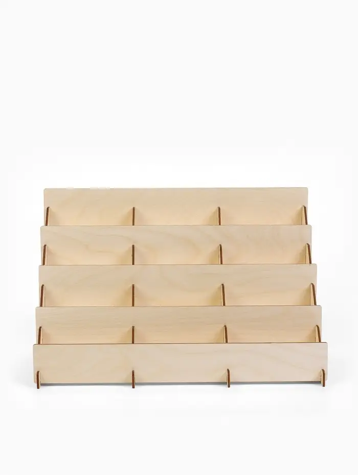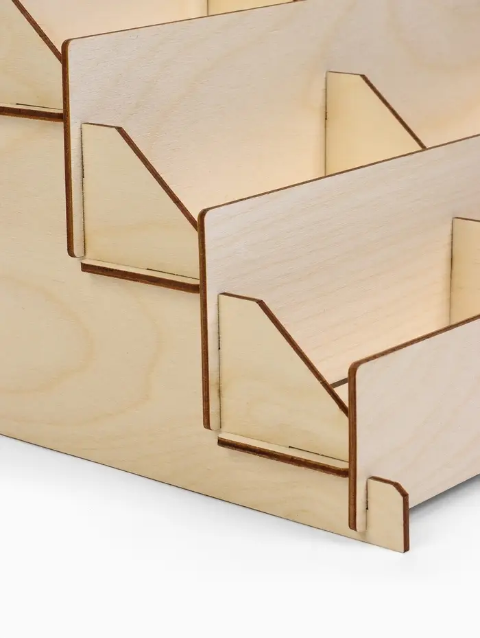 Настольная подставка для открыток с 12 ячейками — это удобное решение для организации и демонстрации карточек формата А6+. Размеры 38,1×23×25 см позволяют разместить коллекцию открыток или рекламных материалов в аккуратном порядке. Изготовленная из фанеры толщиной 3 мм в бежевом цвете, она сочетает практичность с эстетикой, создавая гармонию в любом интерьере.