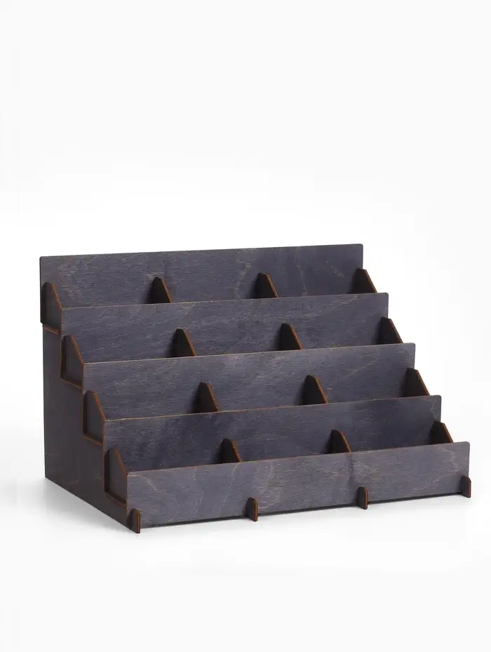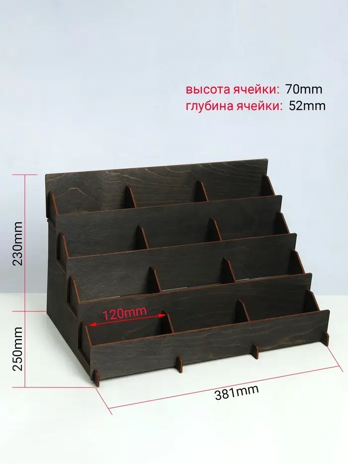 Настольная подставка для открыток и буклетов с 12 ячейками — это удобное решение для организации и демонстрации небольших форматов. Размер ячеек по 12 см позволяют разместить открытки, буклеты или листовки формата А6+. Общие габариты 38,1×23×25 см обеспечивают вместительность и компактность. Изготовленная из фанеры цвета полисандр, она сочетает прочность с эстетичным внешним видом, подходящим для офисов, выставочных залов или домашних интерьеров.