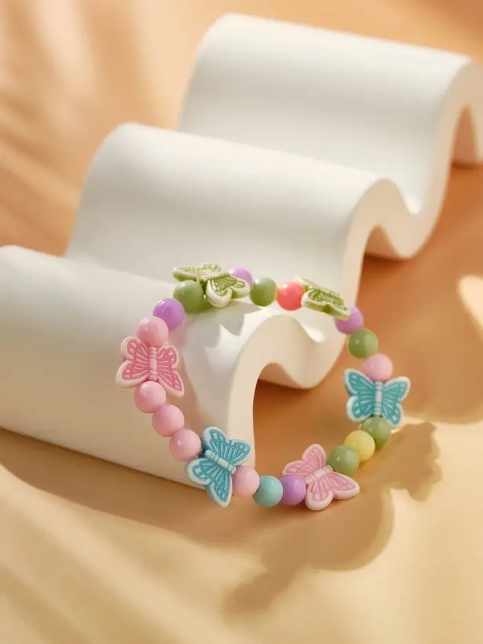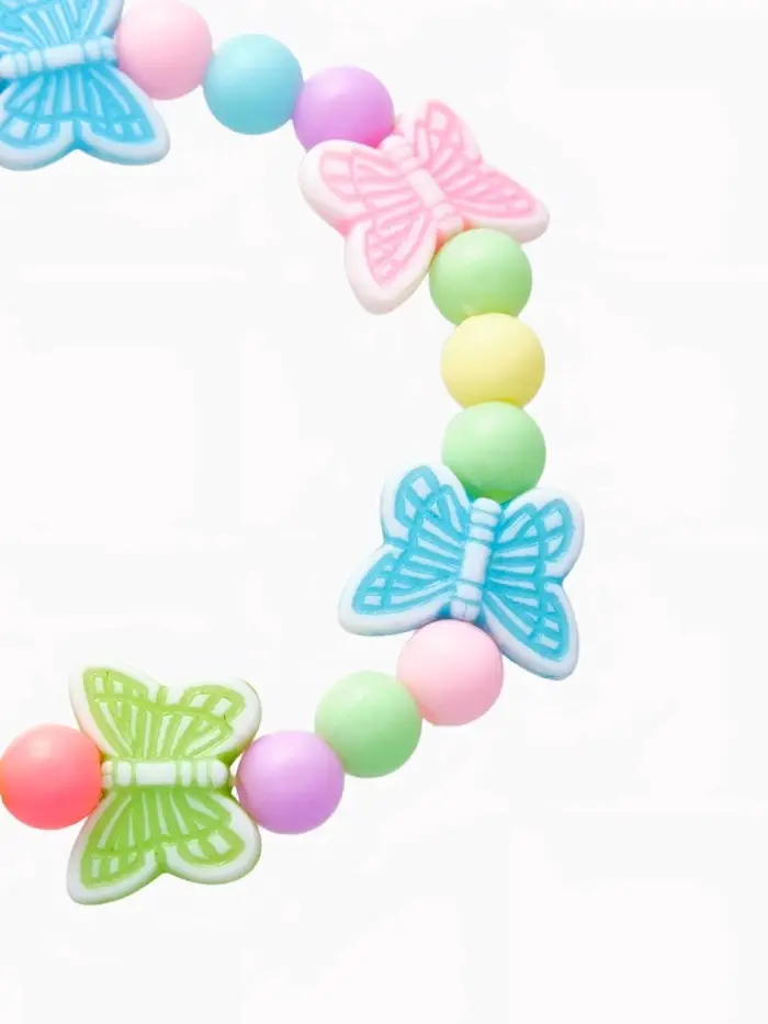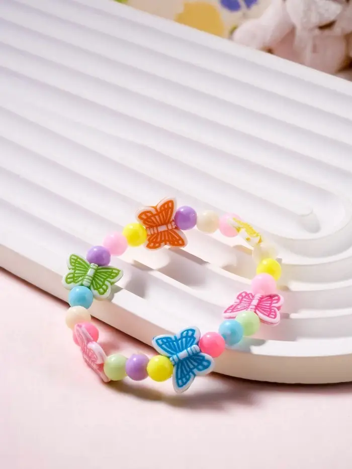 Детский силиконовый браслет с яркими пластиковыми бусинами и изображением бабочек станет стильным и удобным аксессуаром для девочек. Диаметр 6 см подходит для маленьких запястий, а отсутствие застёжки обеспечивает лёгкость в использовании и комфорт при носке.