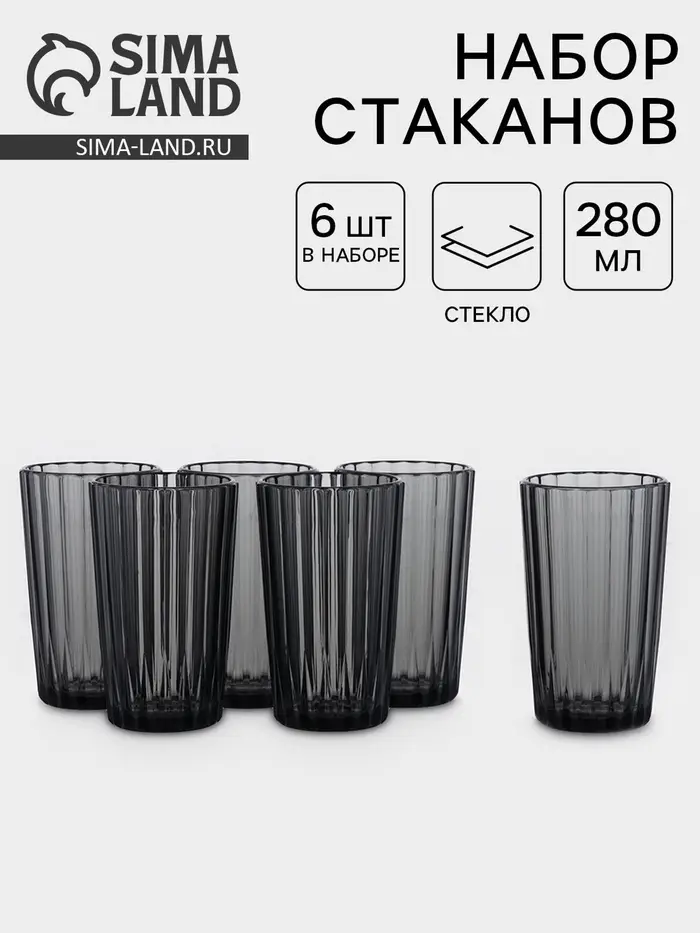 Стиль в каждом глотке! Набор стеклянных стаканов – это шесть вместительных емкостей объемом 280 мл, выполненных из прочного графитового стекла.