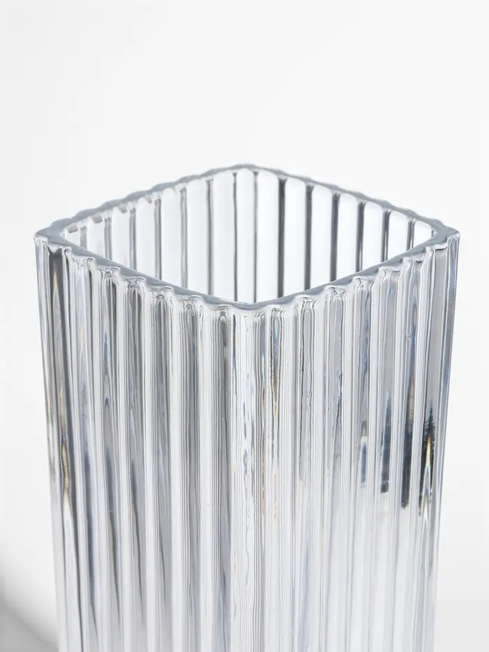 Создайте атмосферу уюта и стиля с настольной вазой из прозрачного стекла — универсальным акцентом для любого интерьера. Изящная форма и лаконичный рисунок полос составляют ее современный дизайн, который легко сочетается как с классическим, так и с минималистичным оформлением пространства.