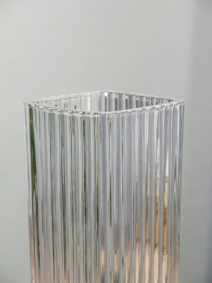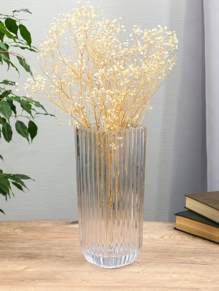 Такая ваза станет не просто ёмкостью для цветов, элементом декора, способным украсить гостиную, кухню или рабочий стол. Прозрачность стекла придает воздушность, а четкие линии полос придают композиции структуру и порядок. Ее можно использовать как самостоятельный объект или как часть стильной сервировки.