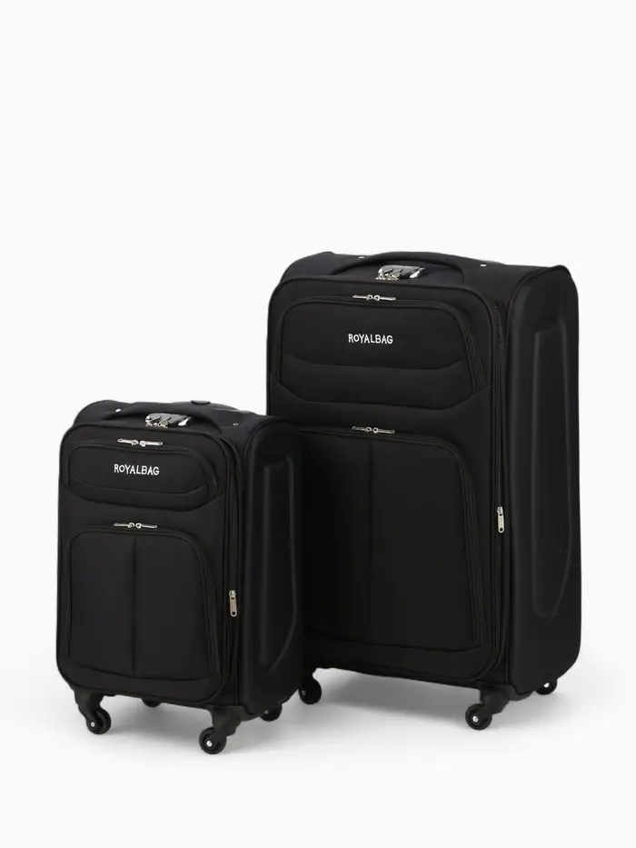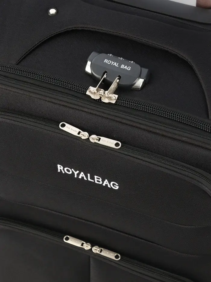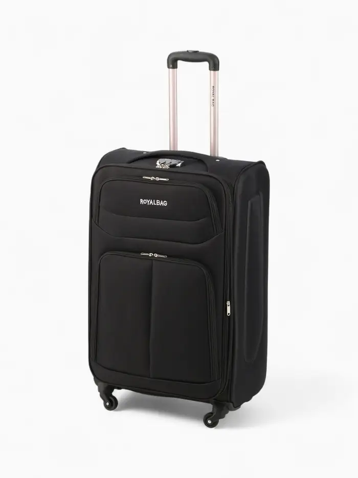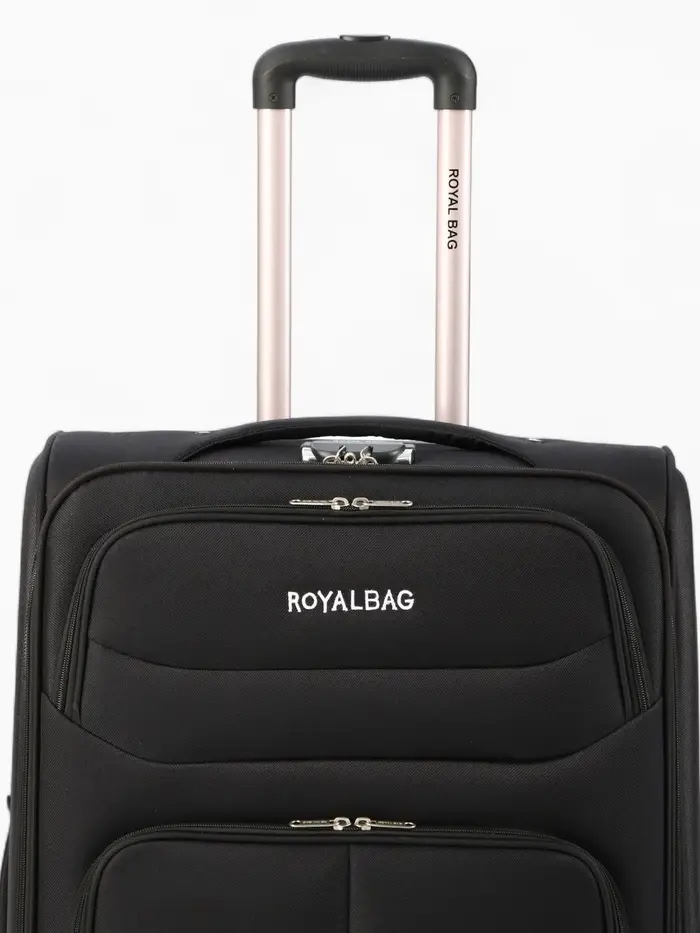Чемодан на колёсах Royalbag большой 104 л (L), на молнии, с увеличением, кодовый замок, 4 колеса, чёрный