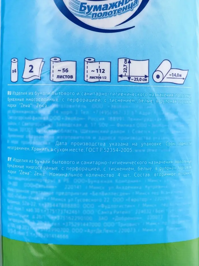 Описание: двухслойные бумажные полотенца Zewa станут универсальным и незаменимым помощником в доме. С их помощью можно легко вытереть пролитую жидкость, отполировать до блеска стекла или посуду, очистить поверхность. 4 рулона в упаковке.