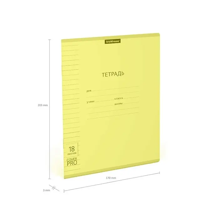 Тетрадь 18 листов, ErichKrause «Классика CoverPrо Neon», в линейку, пластиковая обложка, блок офсет 100% белизна, жёлтая