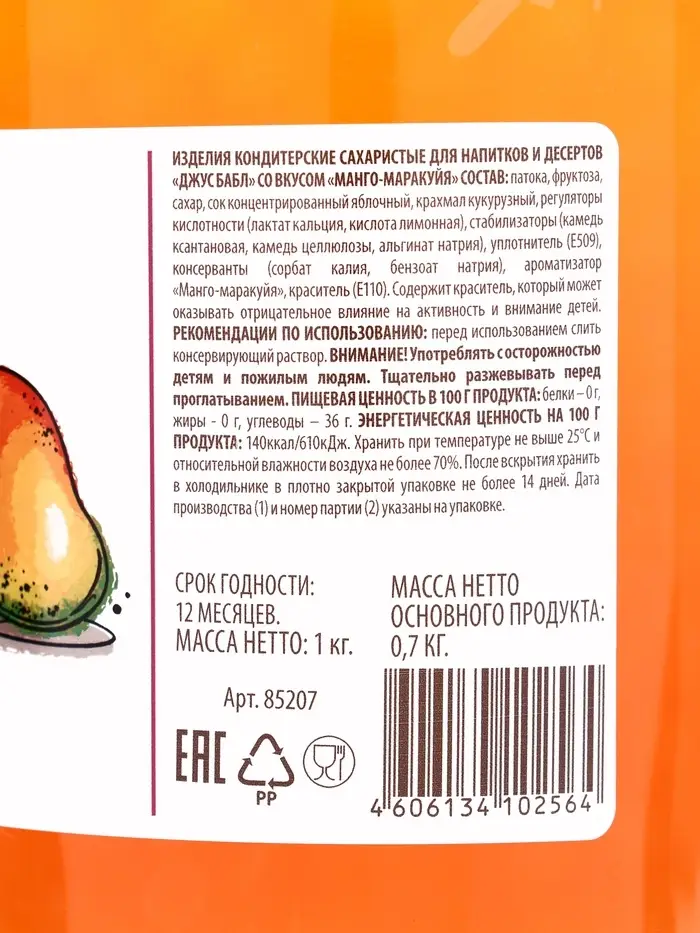Изд.конд.сахар."ДЖУС БАБЛ" вкус манго-маракуйя 1кг