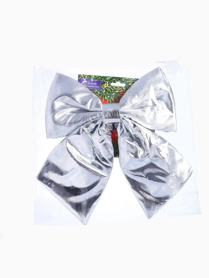 Ёлочная игрушка «Зимнее волшебство. Бант лоск» пластик, 24×26 см, серебро