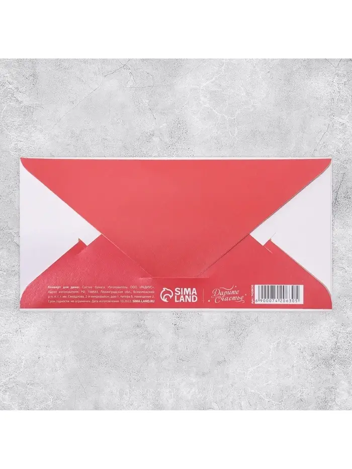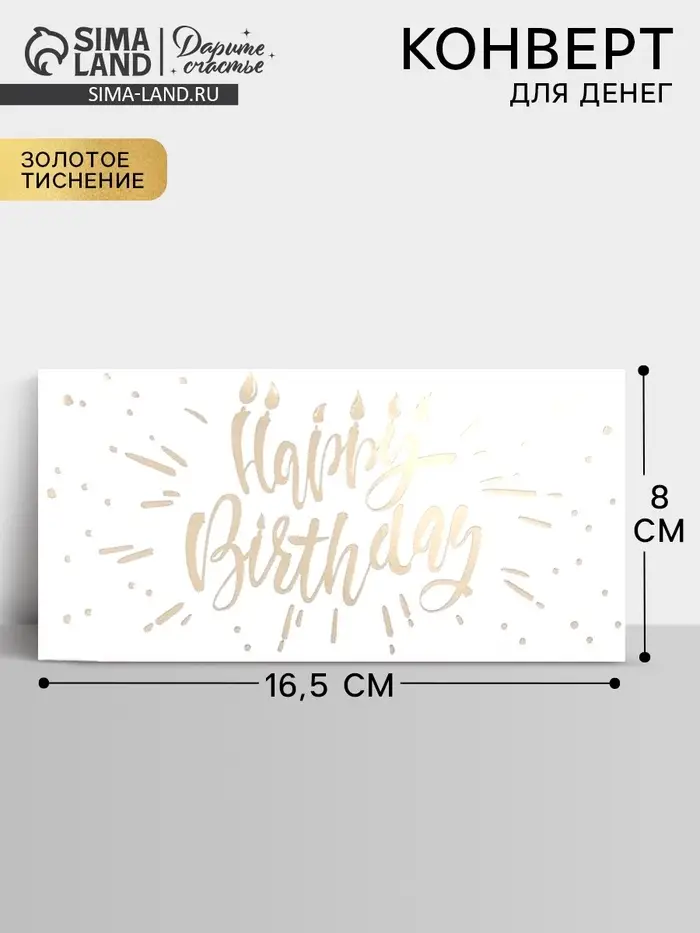 Конверт для денег «С Днем Рождения», тиснение, 16.5×8 см