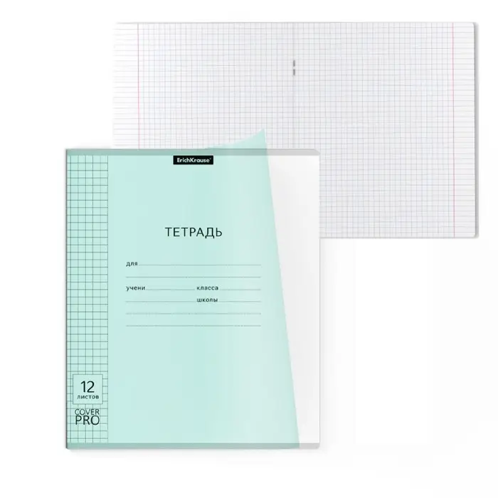 Тетрадь 12 листов в клетку, ErichKrause «Классика» CoverPrо Pastel, в клетку, пластиковая обложка, мятная