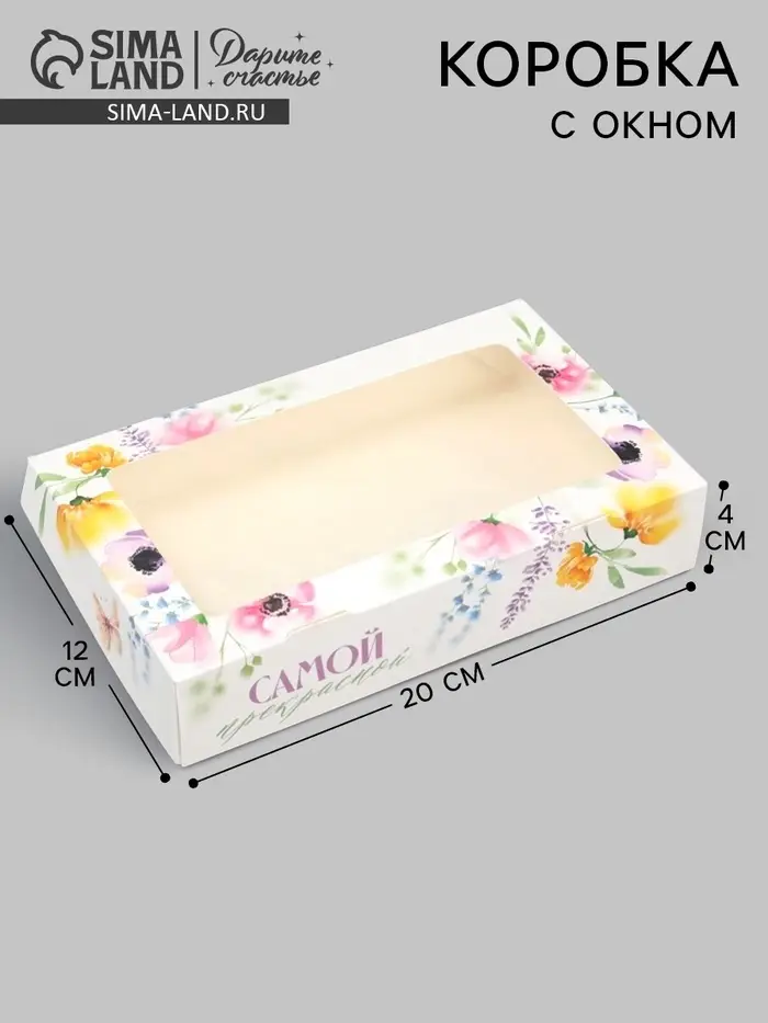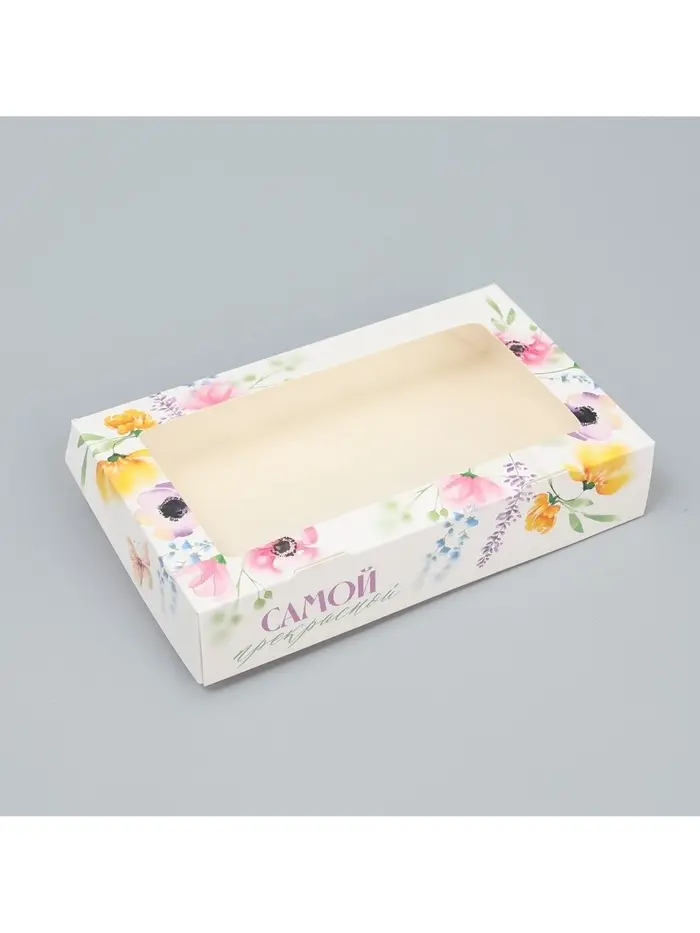 Кондитерская упаковка, коробка с ламинацией «Акварельные цветы», 20×12×4 см