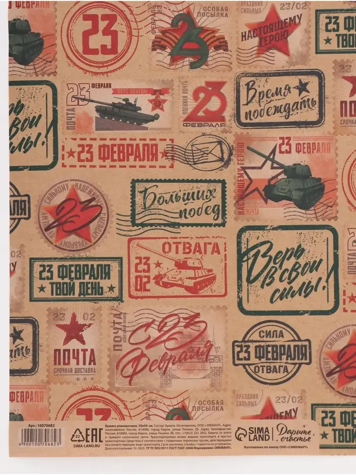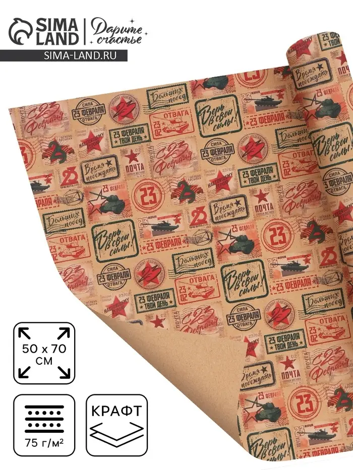 Бумага упаковочная крафт «Военная почта», 50×70 см