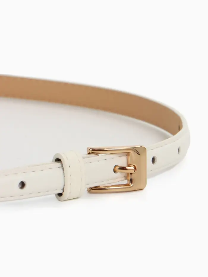 Белый цвет особенно выигрышно смотрится с летними платьями, льняными брюками и светлыми джинсами. Ремень устойчив к загрязнениям — сохраняет свежий вид весь сезон.