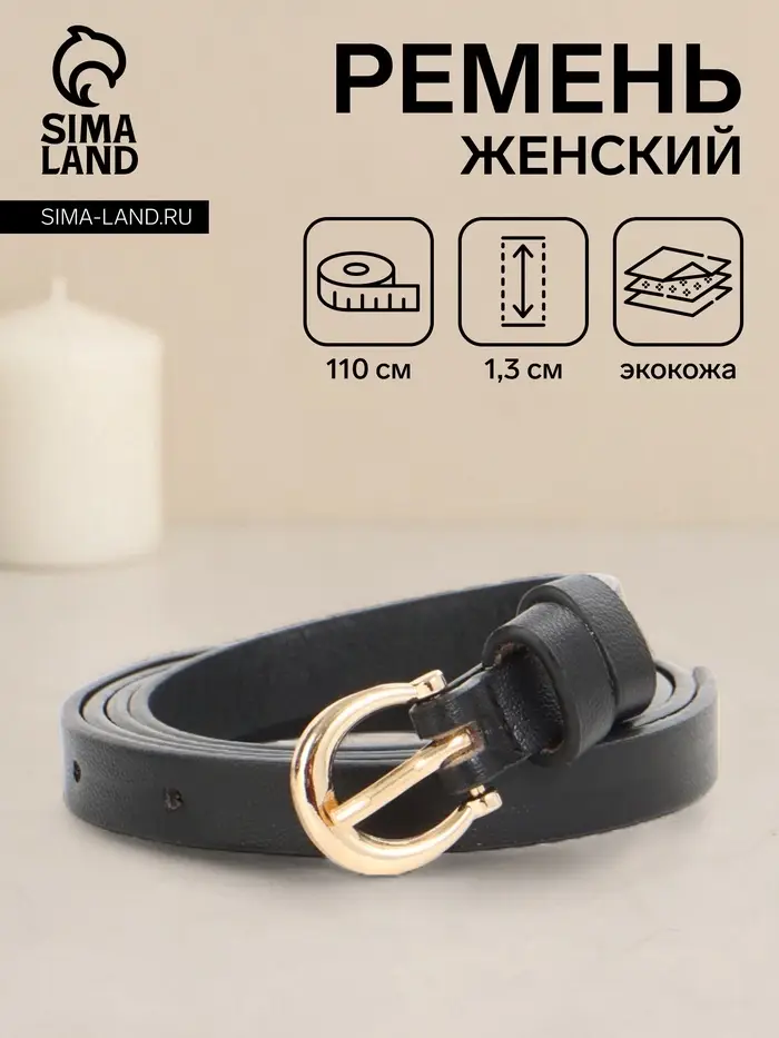 Ремень женский тонкий, 110×1.3 см, пряжка металл золотистая, полукруглая, чёрный