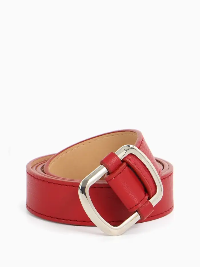 Яркий красный ремень с серебряной застежкой — смелый акцент для современных образов. Ширина делает его идеальным выбором чтобы подчеркнуть талию с джинсами и платьями.