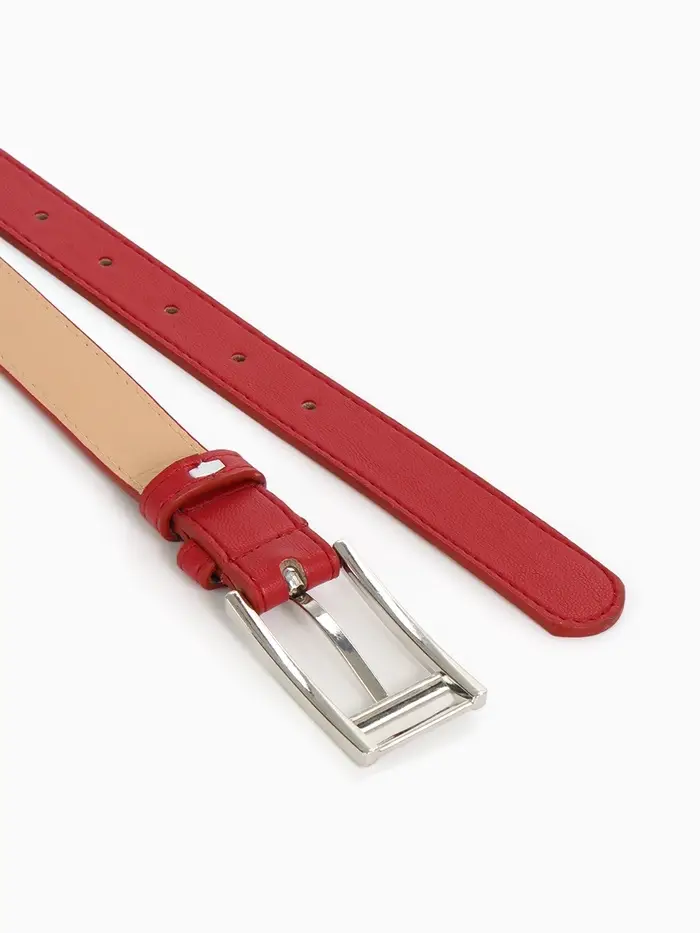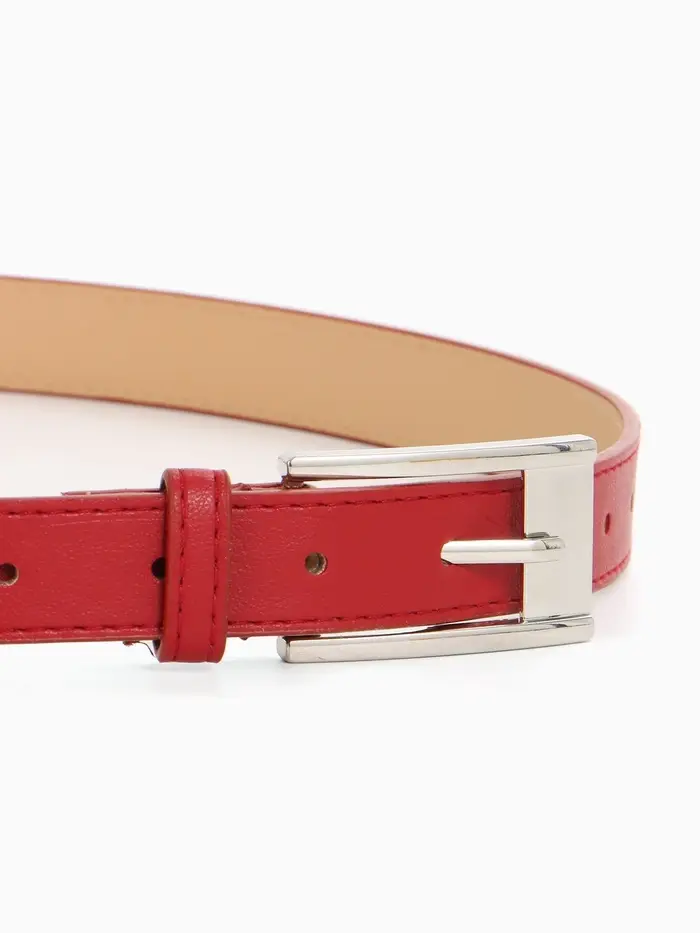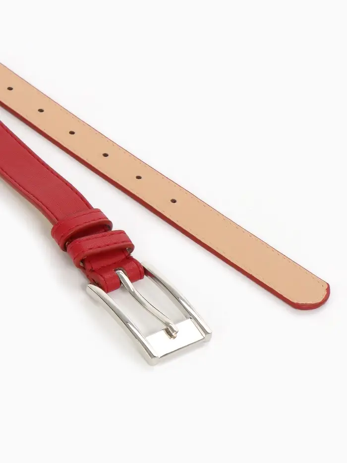 Яркий красный ремень с серебряной пряжкой — смелый акцент для современных образов. Ширина делает его идеальным выбором для подчеркивания талии с джинсами и платьями.