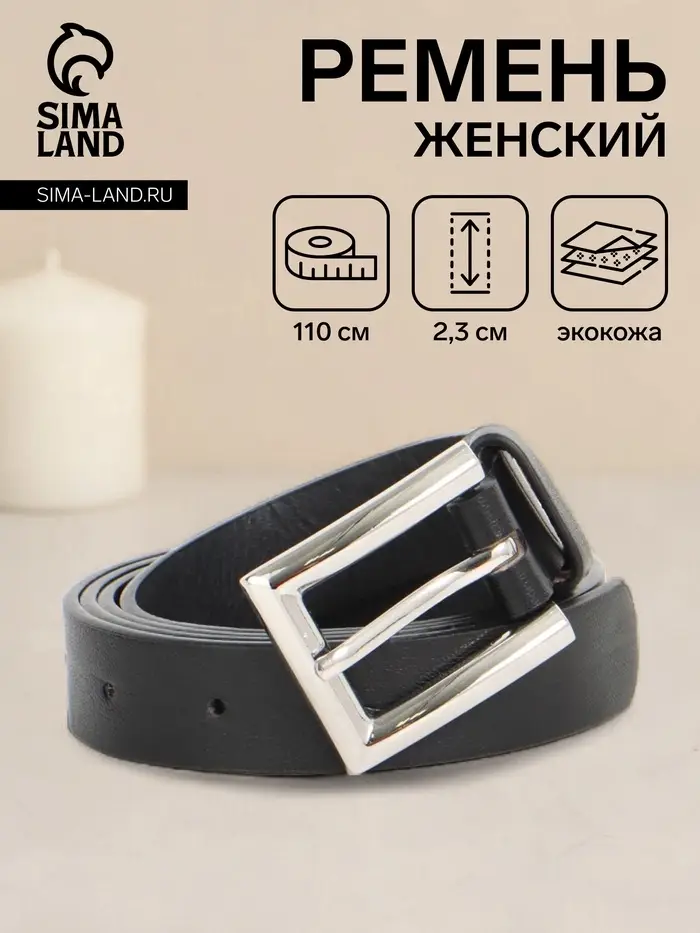 Ремень женский, 110×2.3 см, классическая пряжка металл, серебристая, чёрный