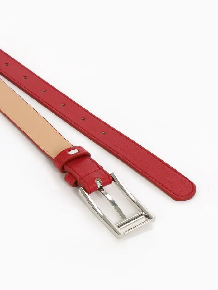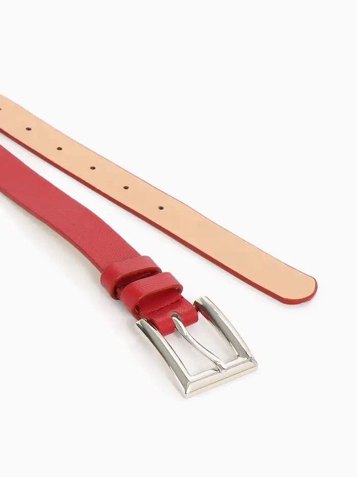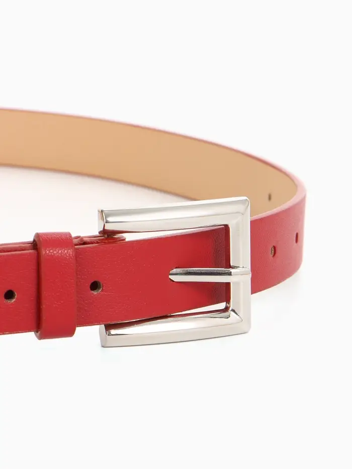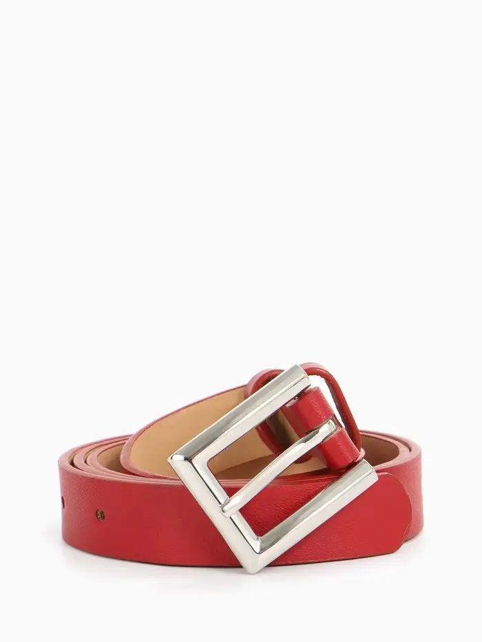 Яркий красный ремень с серебряной пряжкой — смелый акцент для современных образов. Универсальная ширина делает его идеальным выбором для подчеркивания талии с джинсами и платьями.