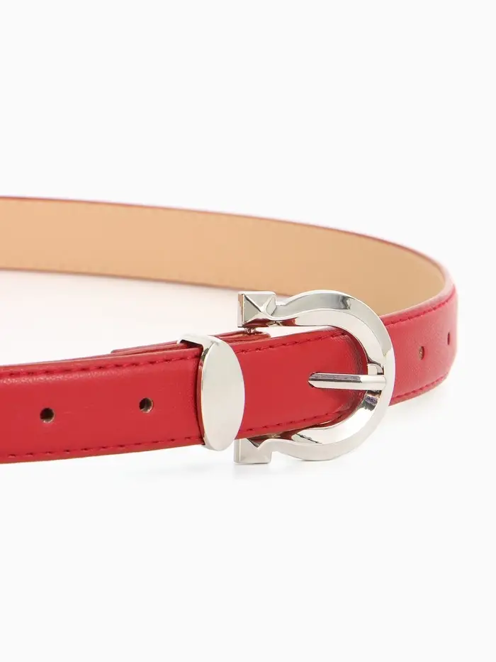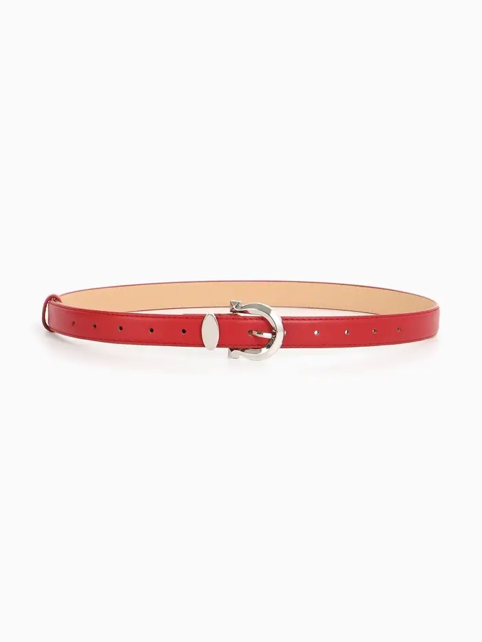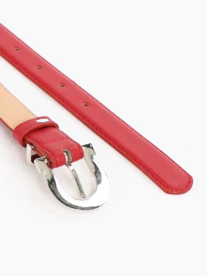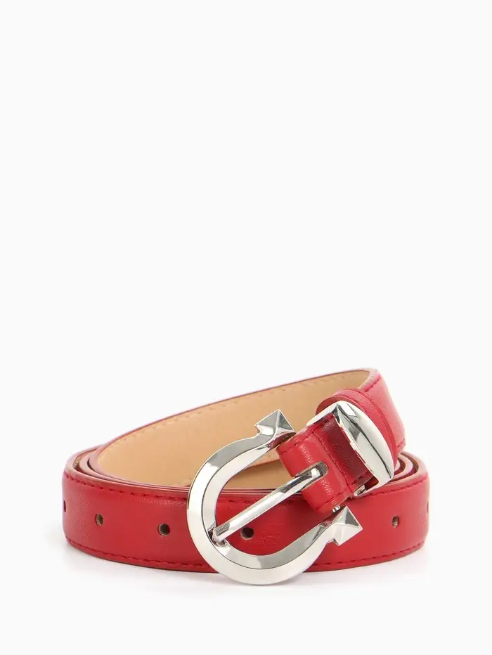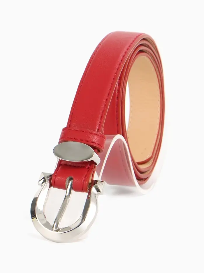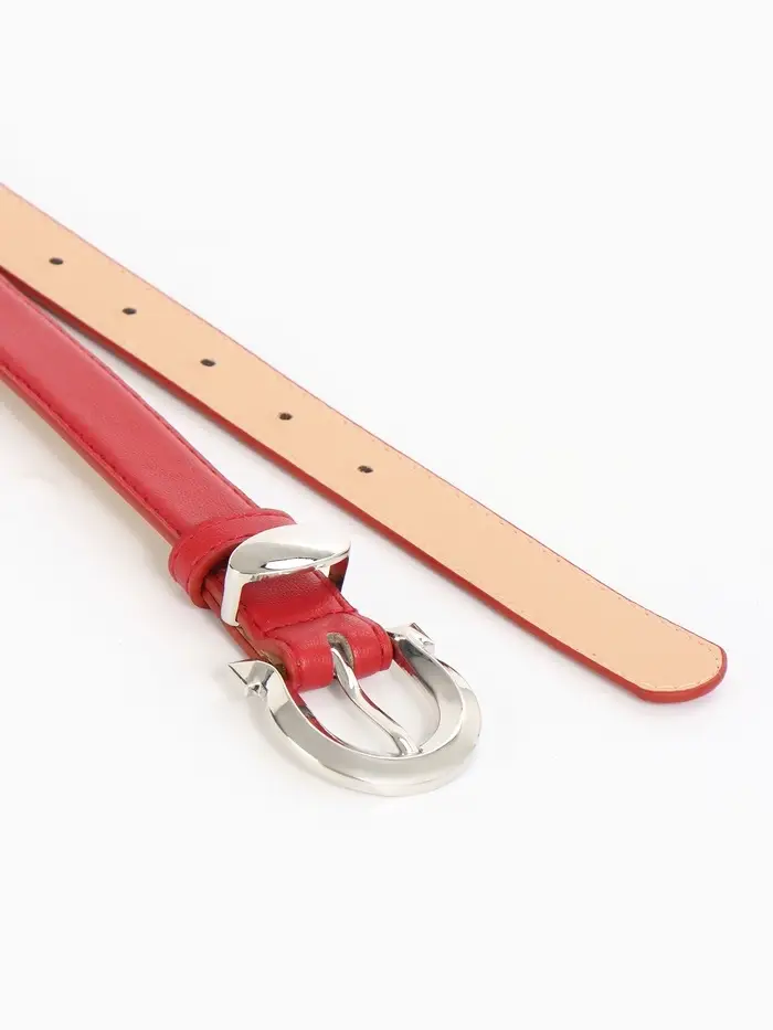 Яркий красный ремень с серебряной пряжкой — дерзкий акцент для смелых образов. Универсальная ширина делает его идеальным дополнением как к джинсам, так и к платьям.