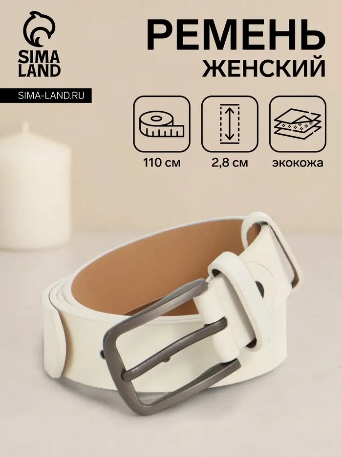 Ремень женский с винтом, 110×2.8 см, классическая пряжка металл, серебристая, белый
