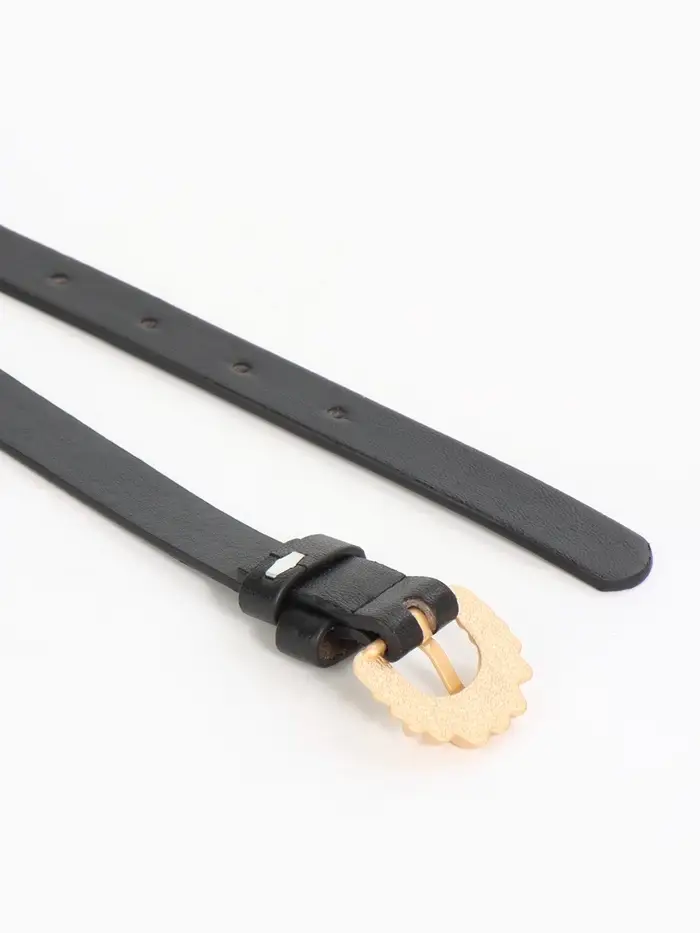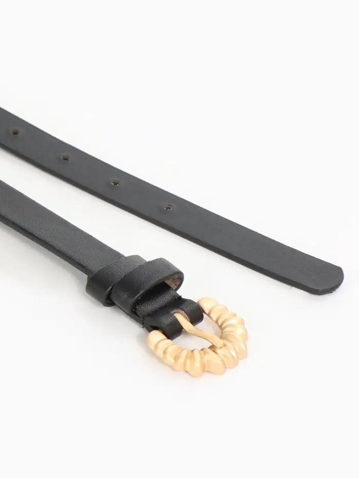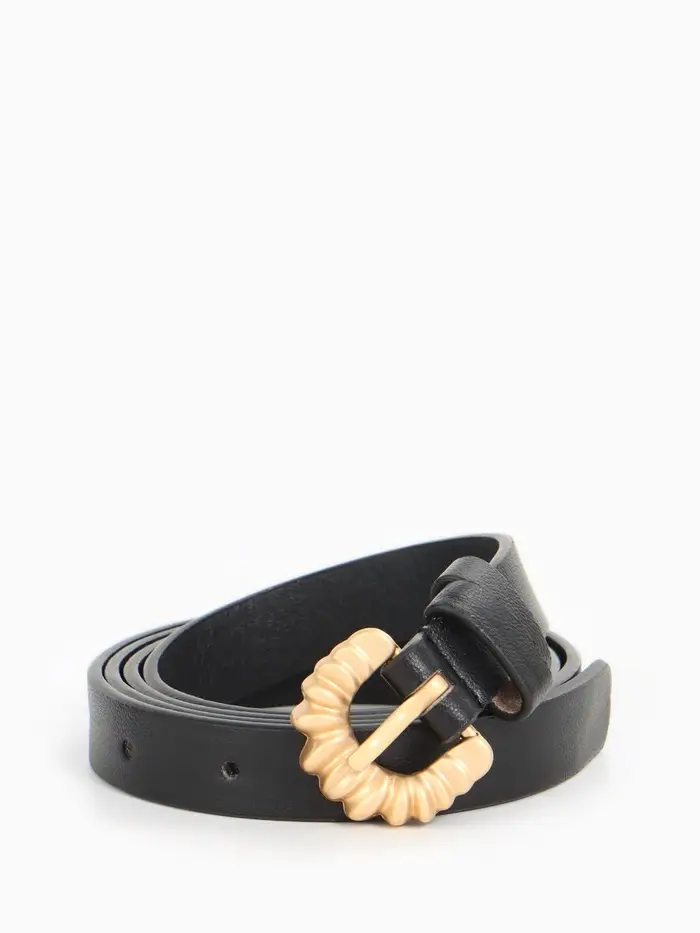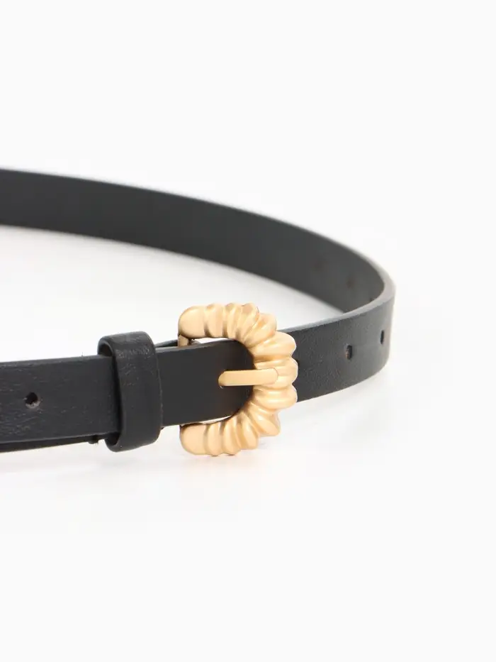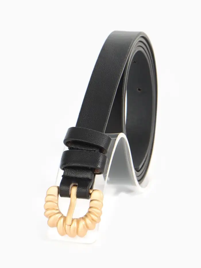 Универсальный черный ремень с золотой пряжкой — идеальное дополнение для повседневных и вечерних образов. Ширина создает выразительный акцент на талии, сохраняя при этом сдержанную элегантность. Материал из искусственной кожи отличается износостойкостью и приятной текстурой.