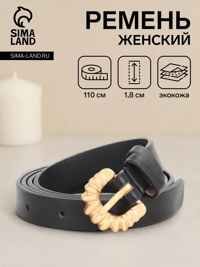 Ремень женский тонкий, 110×1.8 см, пряжка металл, чёрный
