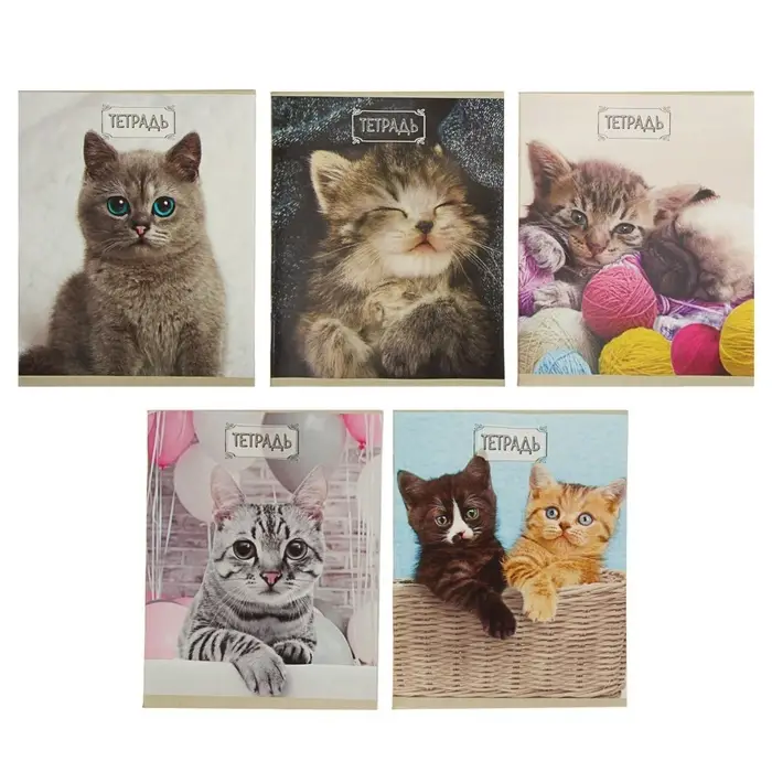 Комплект тетрадей из 5 штук, 48 листов в клетку Calligrata "Meow", обложка мелованный картон, блок офсет