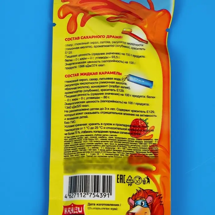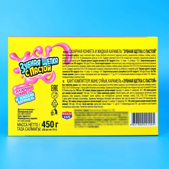 Сахарное ассорти: конфета и жидкая карамель «Зубная щетка с пастой», 15 г
