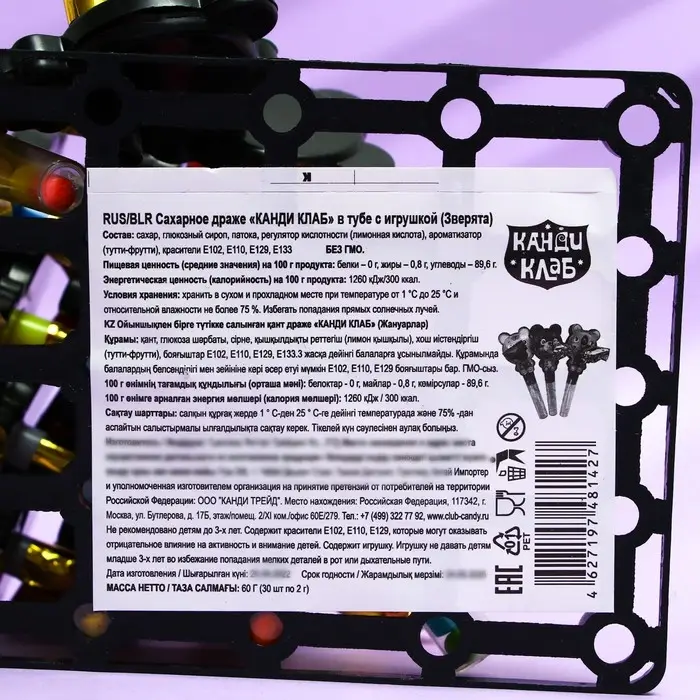 Драже сахарное"Зверята" в тубе с игрушкой, 2 г