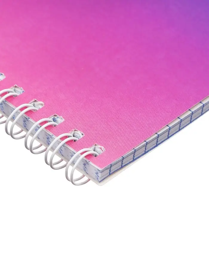 - Стильные градиентные обложки: Мелованный картон с плавными переходами цветов выглядит современно. Каждый блокнот в линейке имеет свой насыщенный оттенок — можно подобрать под настроение.