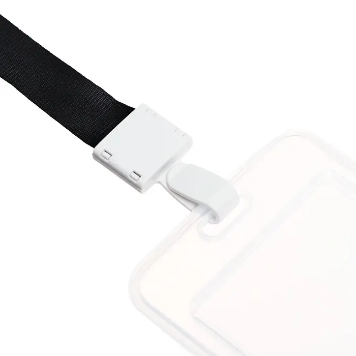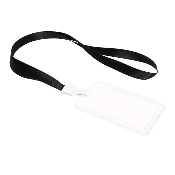 Бейдж - карман вертикальный, прозрачный, пластиковый, внешний размер 112×68 мм, внутренний размер 85×54 мм, лента 80×1.5 см