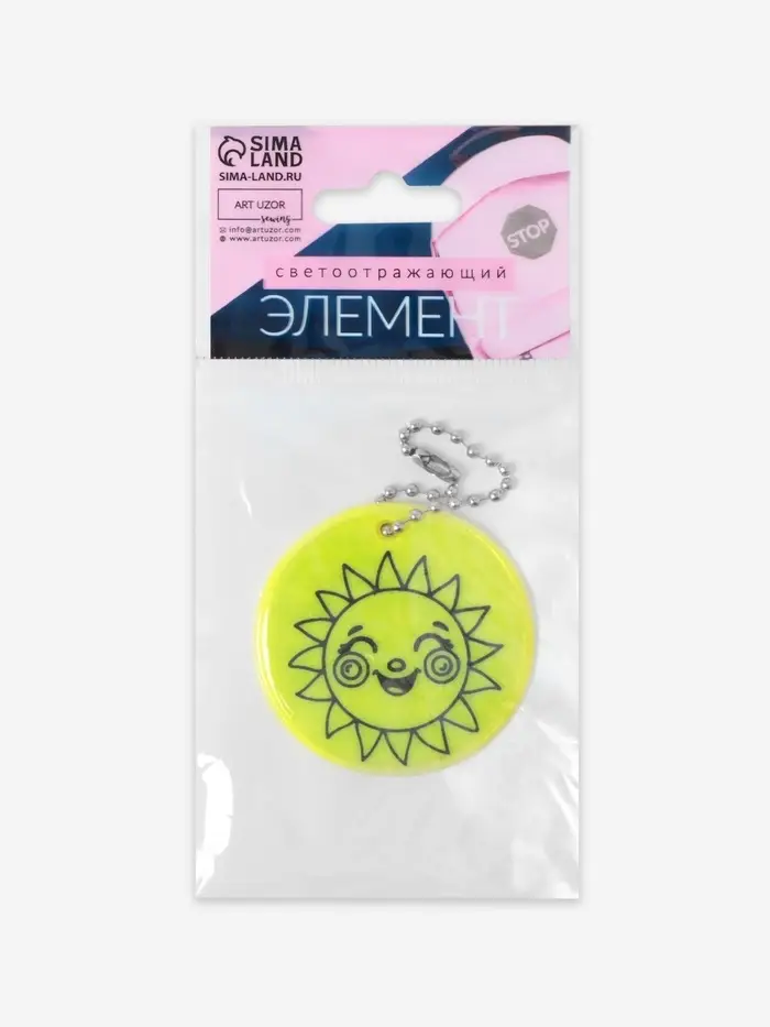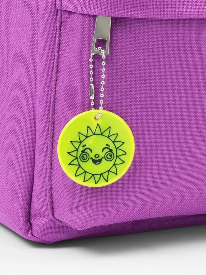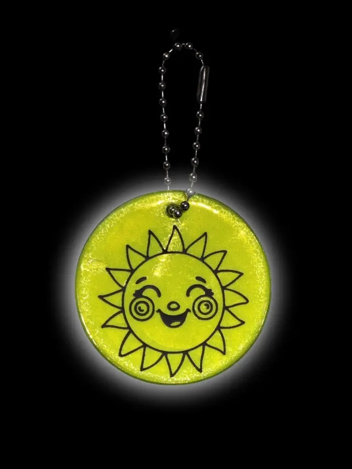 - Двусторонний световозвращающий брелок с изображением солнышка для высокой видимости.