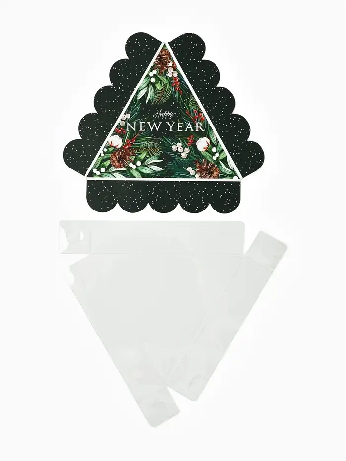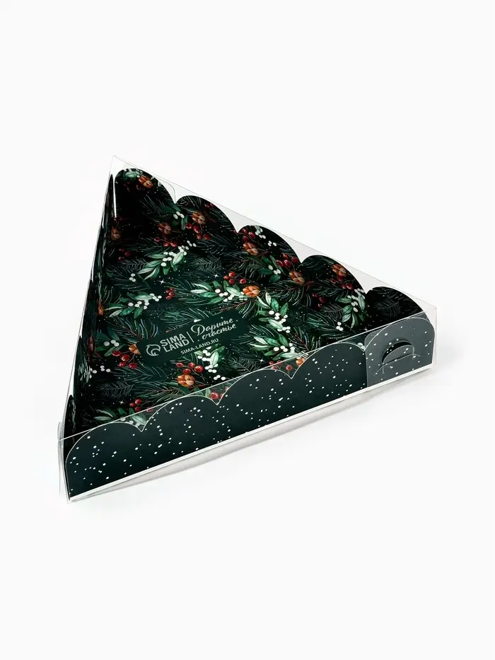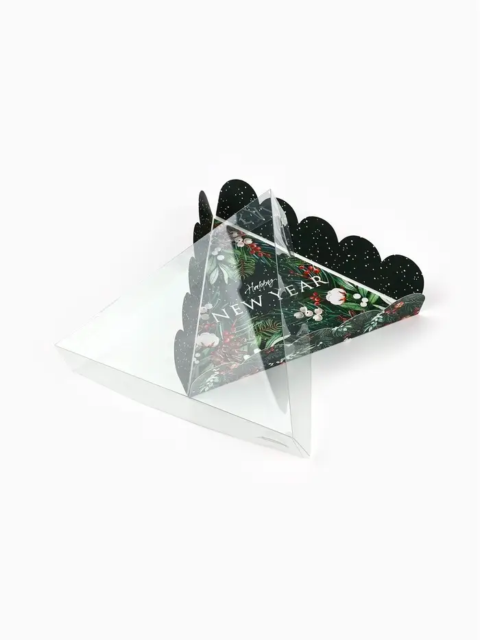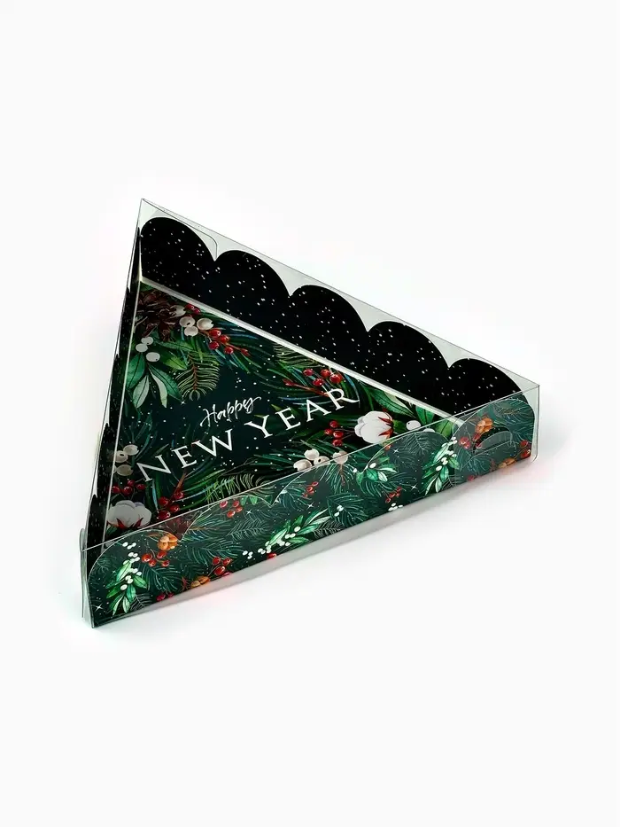 Коробка для кондитерских изделий новогодняя с пластиковой крышкой Happy New Year, 18×4 см