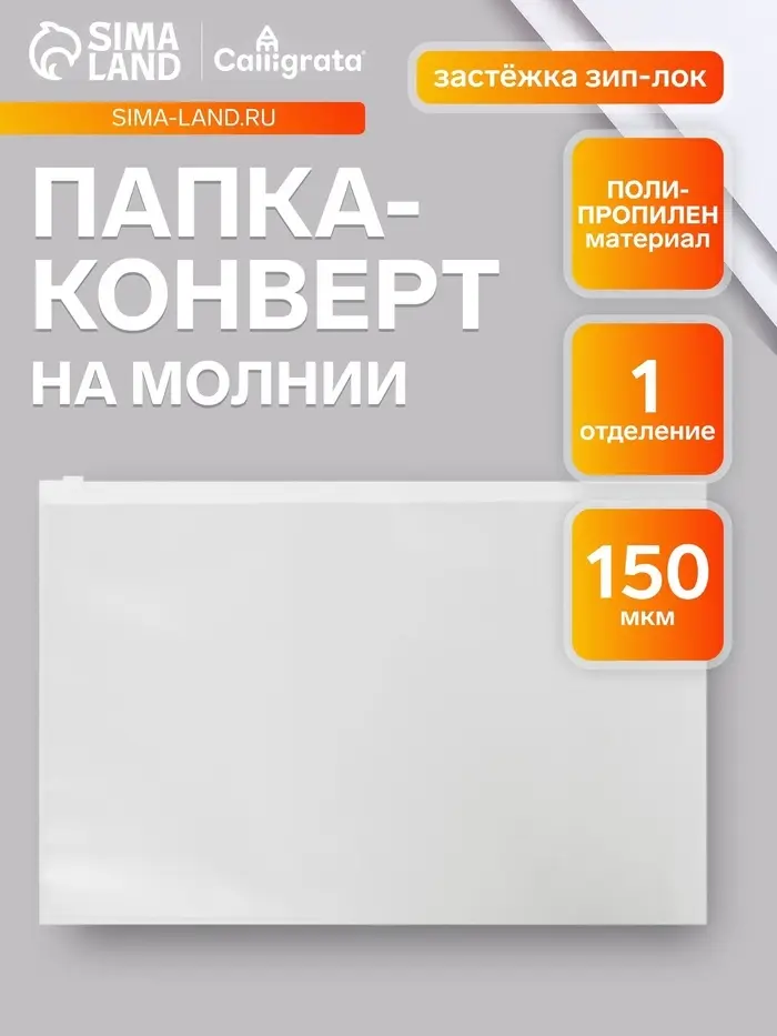 Папка-конверт на молнии Calligrata идеально подойдет для хранения и транспортировки документов. Изготовлена из прочного прозрачного пластика толщиной 150 мкм с гладкой фактурой. Формат А4 (333х230 мм). Герметичная застежка-зиплок защищает документы от механических повреждений, а также пыли и влаги. Цвет молнии – белый.