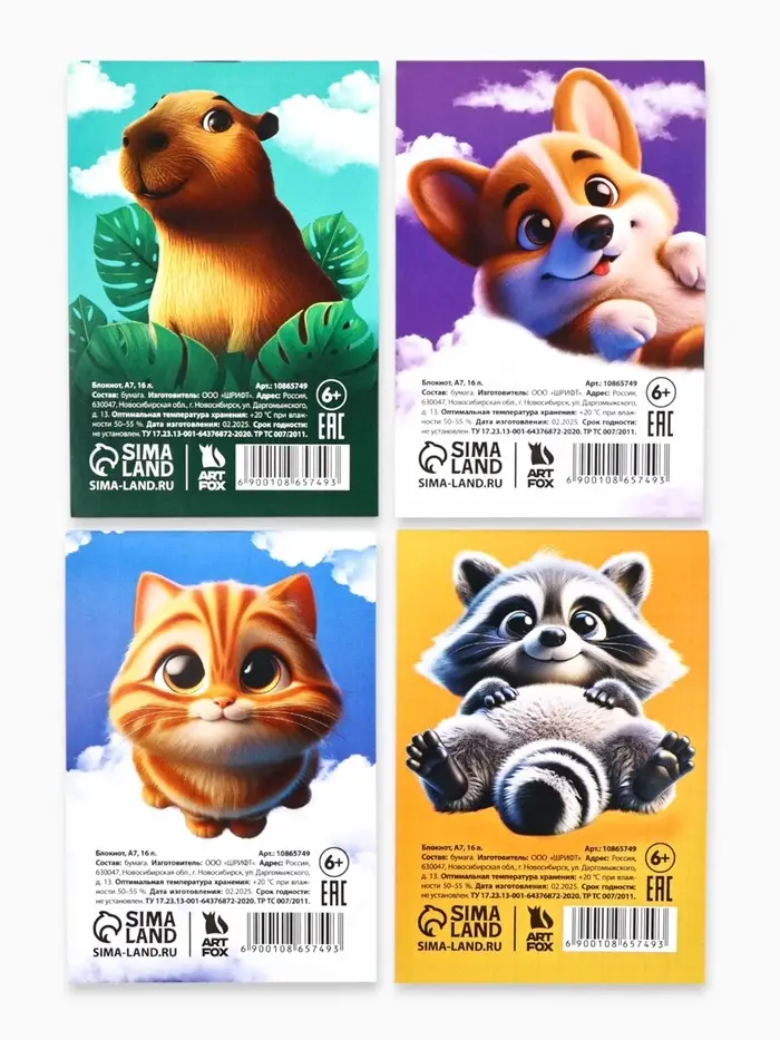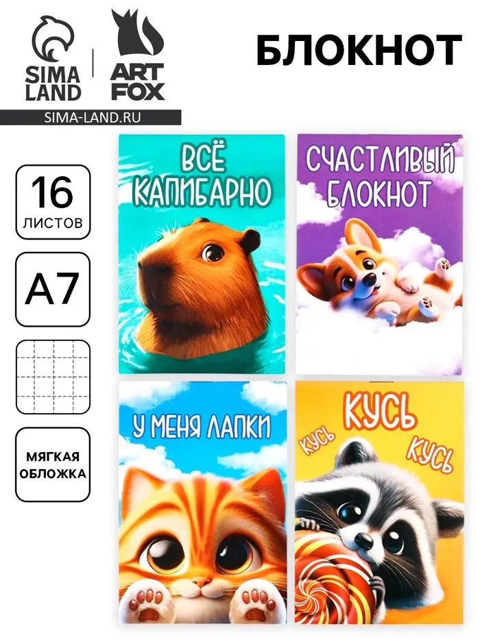 Блокнот А7, 16 л. «Пушистики» МИКС