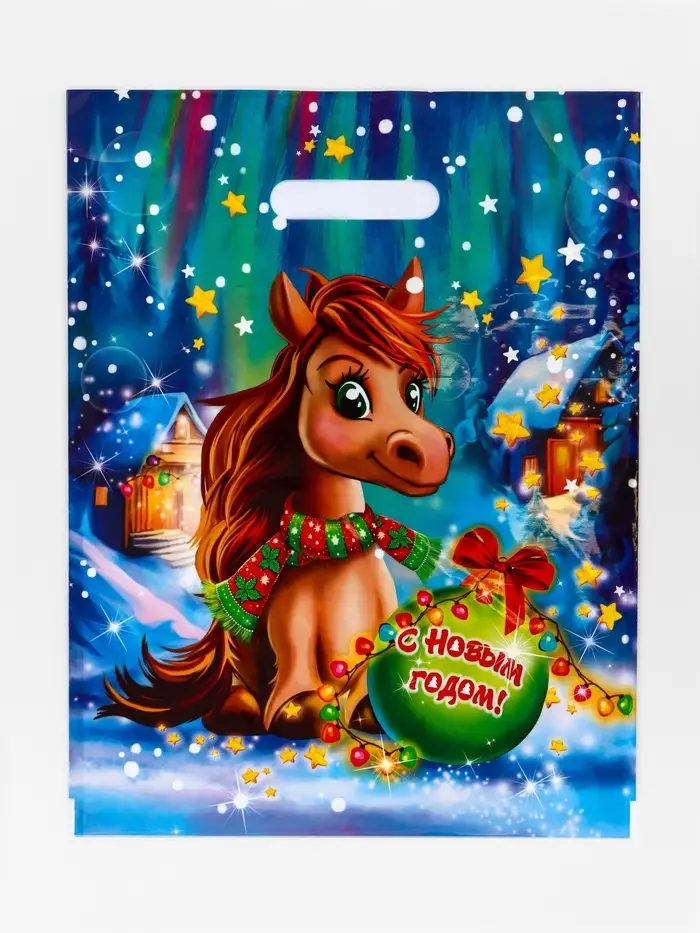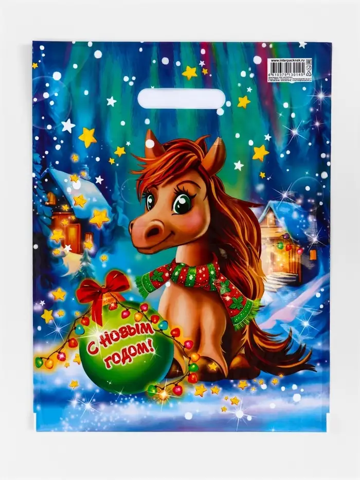 Пакет подарочный новогодний «Лошадка», полиэтиленовый с вырубной ручкой, 31×40 см, 60 мкм