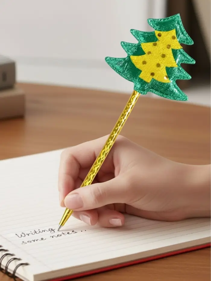 Праздничная ручка с ёлочкой станет оригинальным дополнением к вашему письменному месту. Ее необычный дизайн в виде новогодней ёлки добавит настроение праздника и воздушного волшебства в каждое ваше слово. Синий шариковый стержень обеспечивает плавное письмо, гарантируя комфорт благодаря оптимальному диаметру пишущего узла.