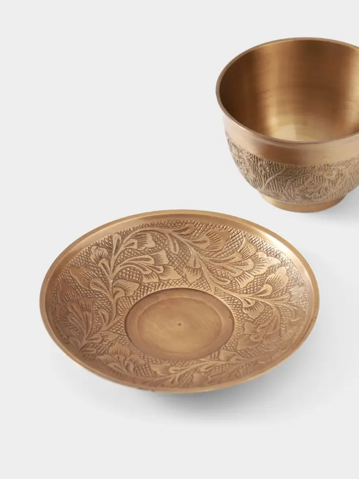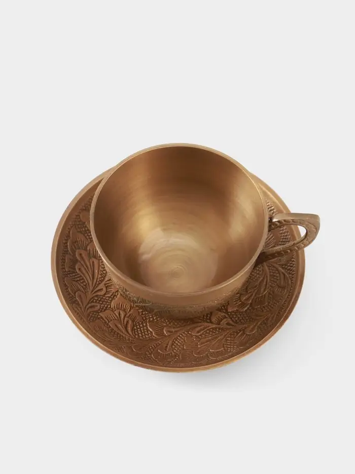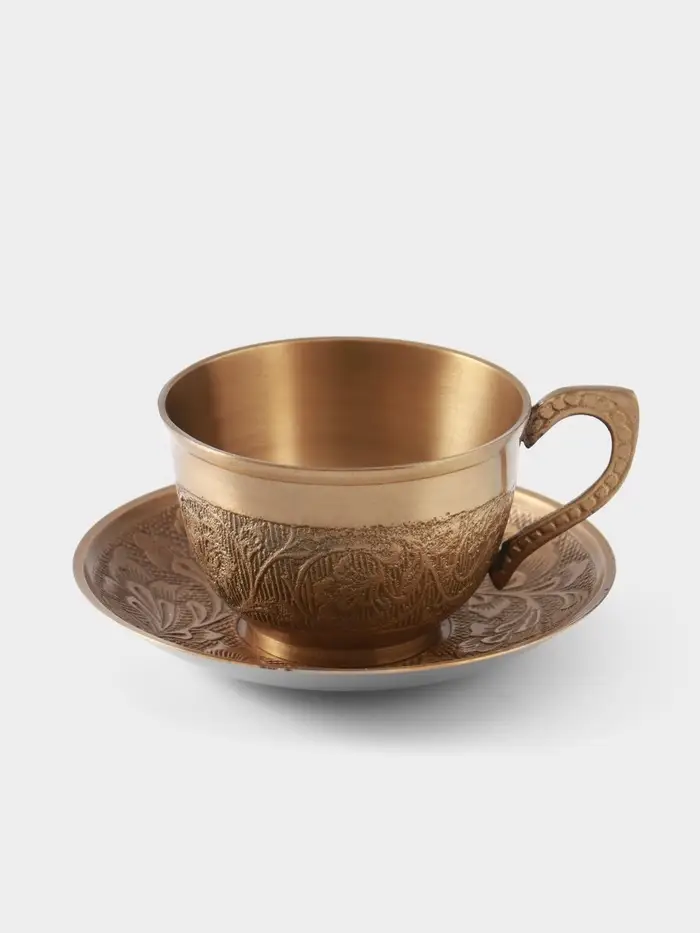 Атмосфера восточного чаепития в каждой детали. Латунная чайная пара «Антик» — это изысканный дуэт для ценителей уединённого ритуала. Комплект из чашки и блюдца, выполненных из цельной латуни, привносит в момент отдыха тепло металла и ауру винтажной роскоши.