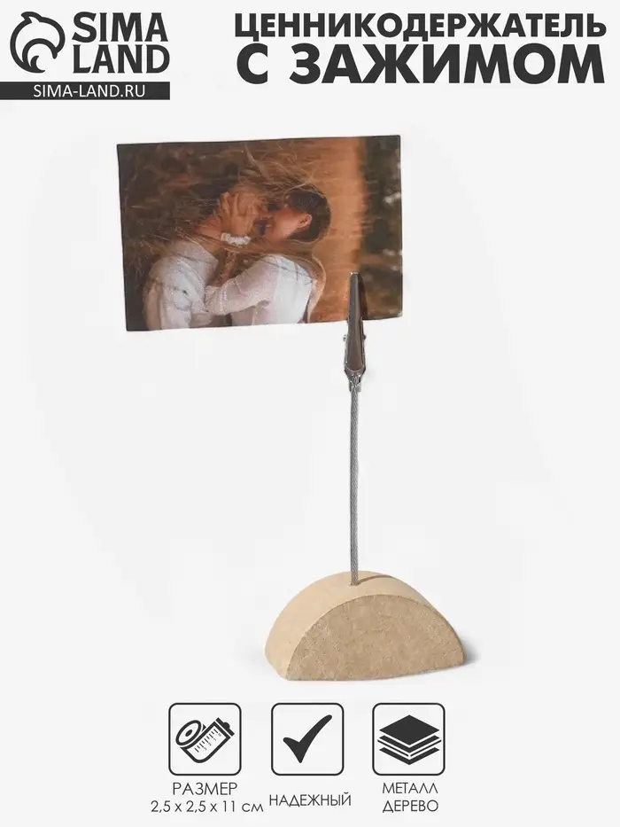Подставка под ценник, фото «Прищепка», с зажимом, 2.5×2.5×11 см, цвет серебро
