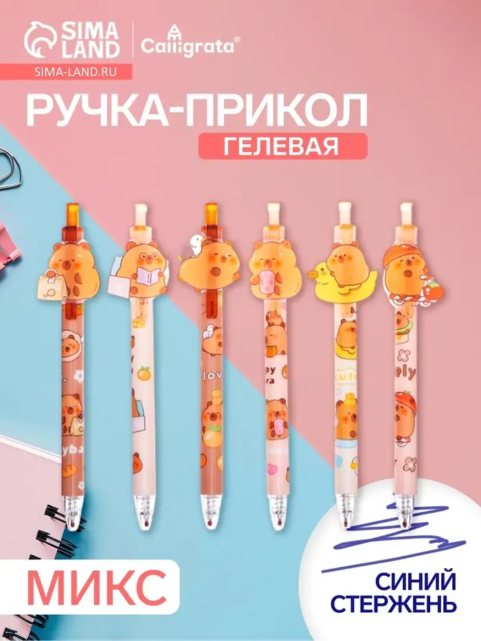 Ручка-прикол Calligrata «Капибара», синий стержень, гелевая, МИКС