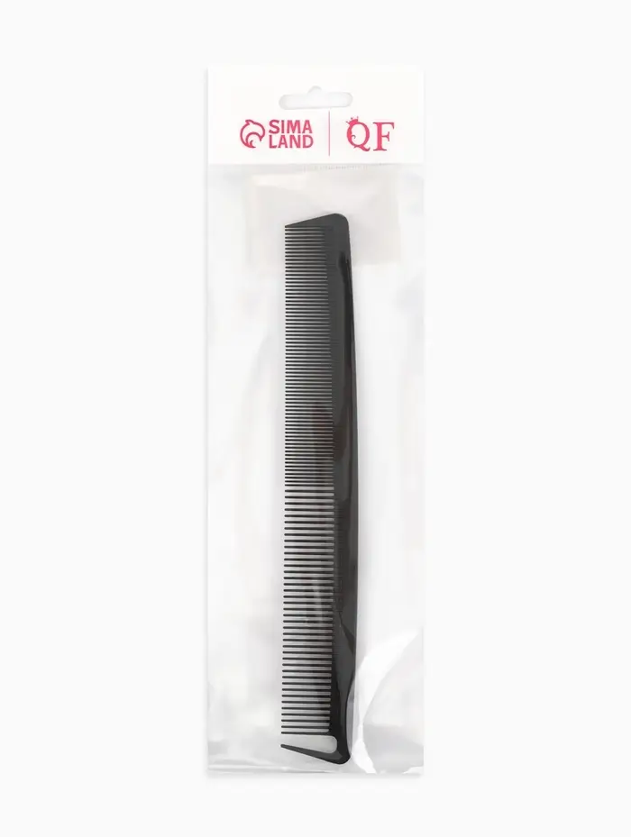 Расчёска антистатическая, 22×3(±1) см, с металлическим хвостиком, карбон, чёрная